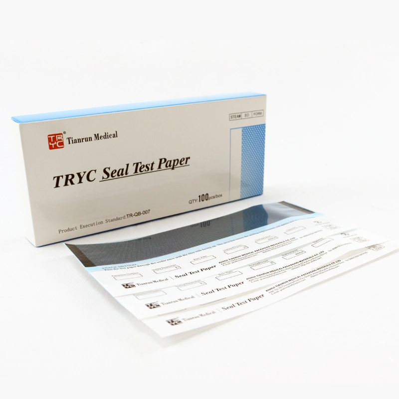 - Description:This product is for single use only.The TRYC brand seal test paper is made of imported plasma dialysis paper It has consistent physical, chemical,mechanical and bacteria barrer properties with the materials used in TryC brand hydrogen peroxide low-temperature plasma sterilization packaging bags and peracetic acid low-temperature sterilization packaging.The sealing effect of the sealing equipment verified by it is consistent with the actual sealing effect of paper-plastic packaging bags.